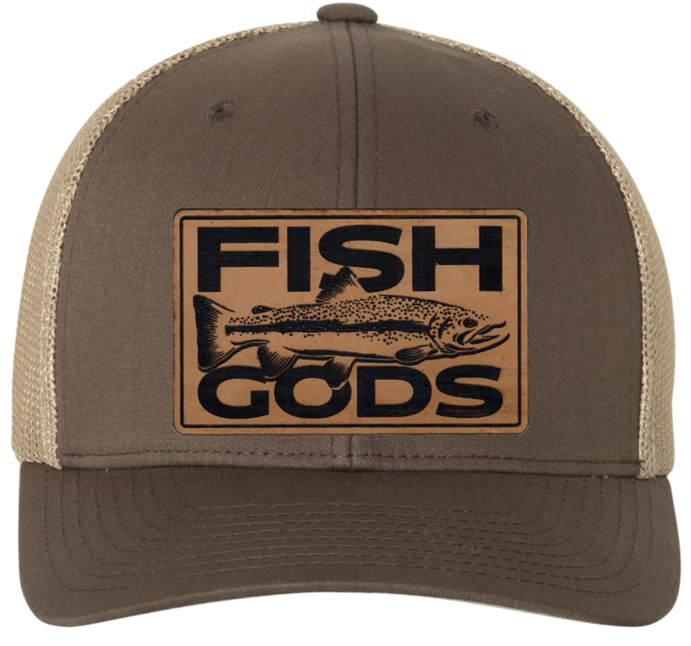 Fish Gods Brown Trout Leather Patch Trucker Hat