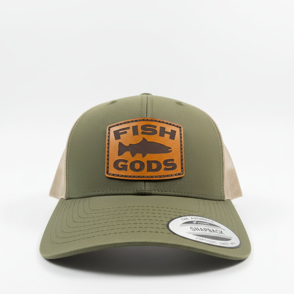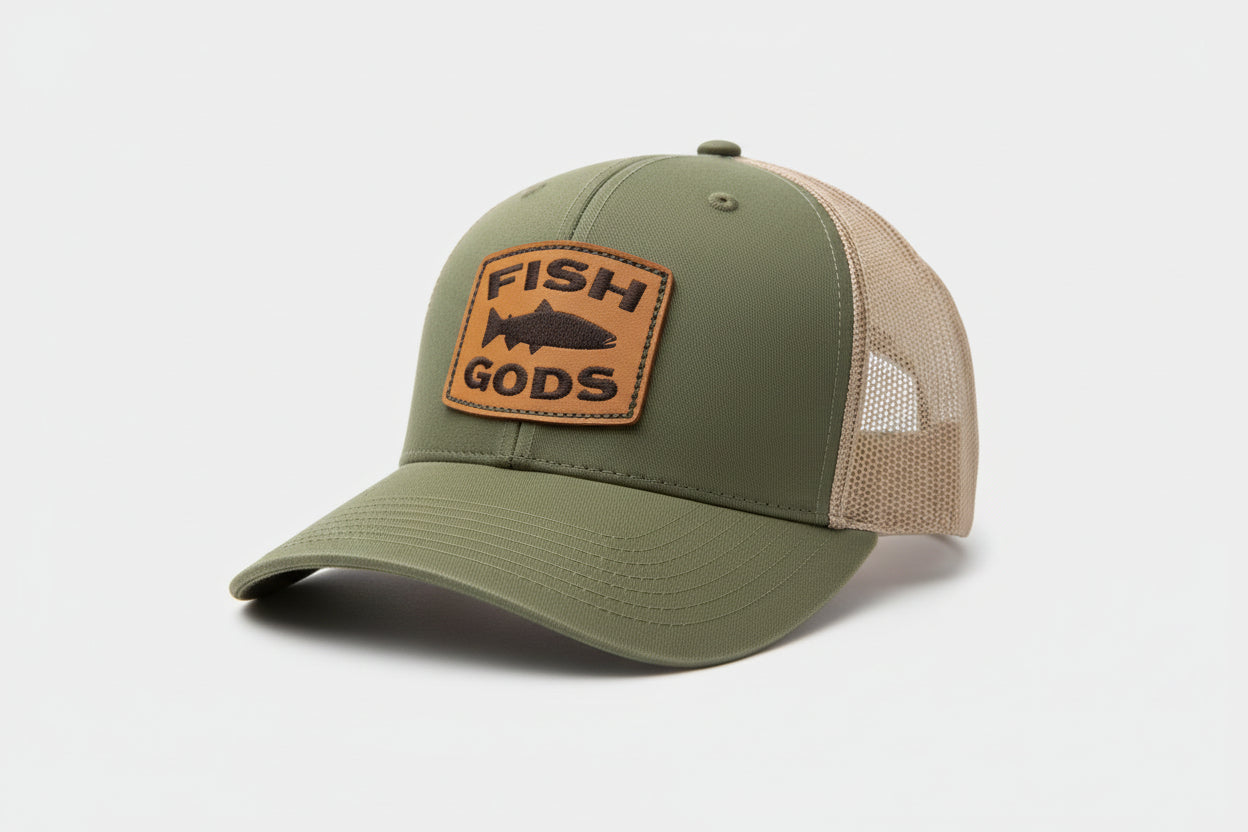 Fish Gods Olive Leather Patch Trucker Hat