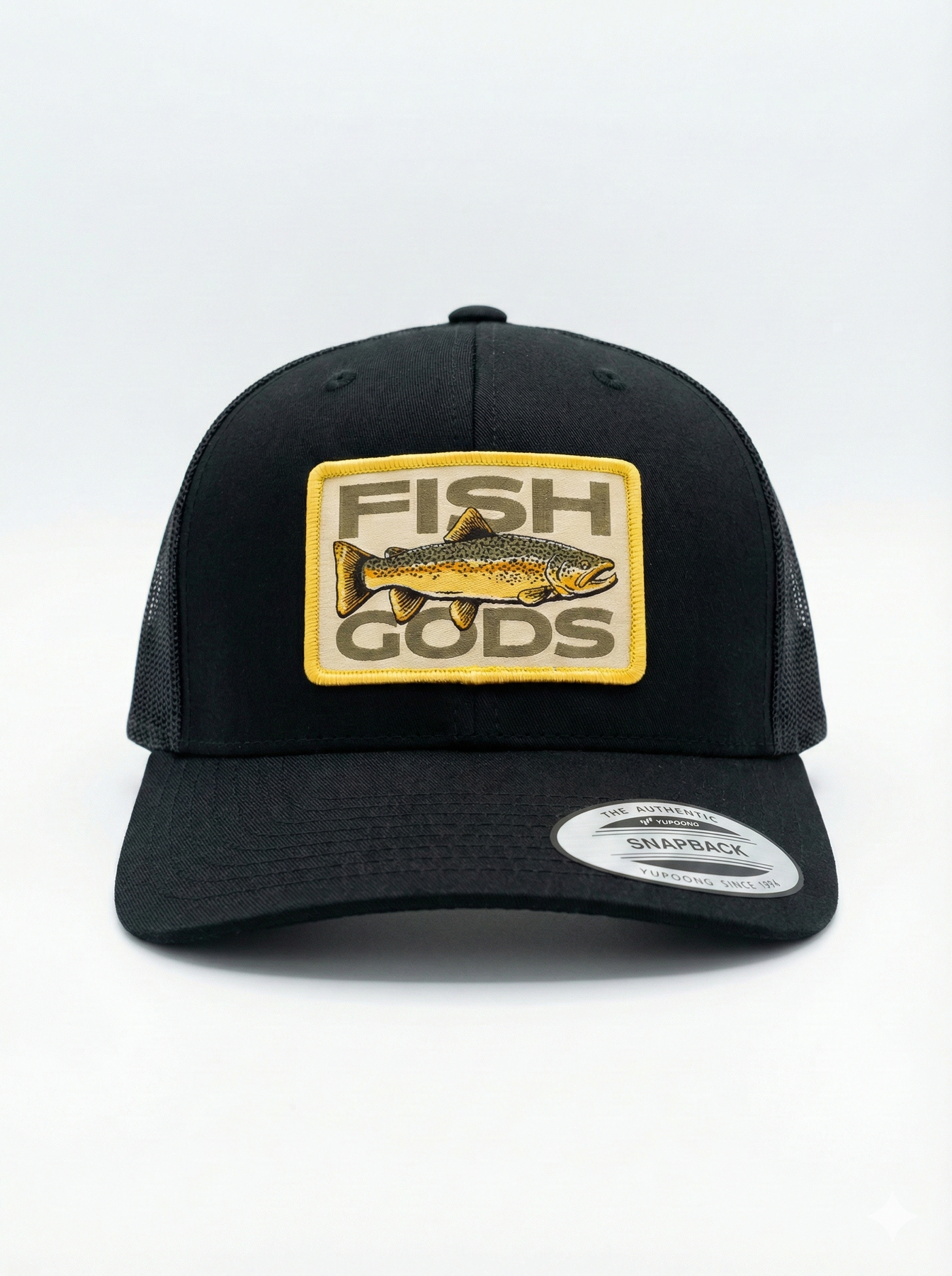 Fish Gods Black Gold Patch Trucker Hat — a premium Yupoong classic designed for anglers, adventurers, and anyone who feels at home in the wild. Whether you're wading in Steelhead Alley, running drift boats at sunrise, hiking ridgelines, or fishing salt flats, this hat is built to handle every mile and every mission.